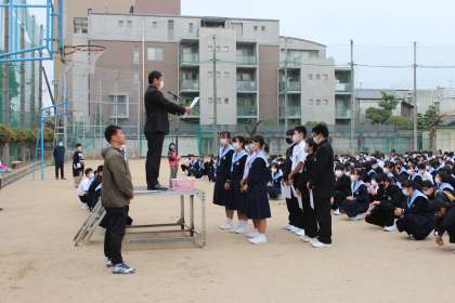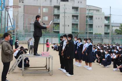10月19日(月)朝、全校集会で陸上部の生徒たちに校長先生から表彰状が授与され、生徒全員から大きな拍手で祝福されました。おめでとうございます!