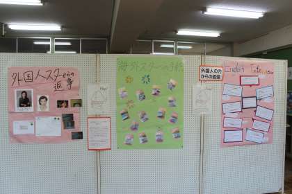 英語分野では、興味のあるテーマについて、スティーブ先生にインダビューし、その内容を展示しました。