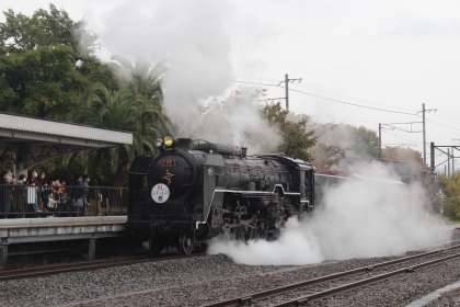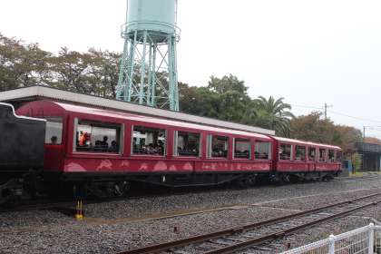 SL機関車に乗車体験です。今も現役で動く、不思議ですね!