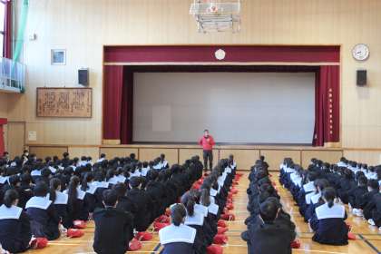 集会では、吉田貴先生から…もうすぐ3年生が卒業します。みんなが最上級生になりますが、最近今までできていたことができていなくて、注意されることが多くなっていませんか?気がゆるんでいませんか?4月には新入生が入っていきます。最上級生として模範となるように気を引き締めて学校生活を送ってくださいと、お話がありました。