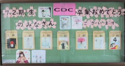 卒業までのCDC(カウントダウンカレンダー)を各クラスごとに作成して、玄関ホールに掲示しています。毎日変わりますが力作ぞろい作品ばかりです!