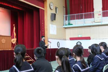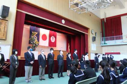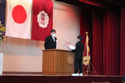 生徒会役員のメンバ−が入学式に参列してくれました。生徒会長Iくんから上級生として優しさ溢れた「歓迎の言葉」があり、新入生を代表してIくんから大きな声でしっかり「誓いの言葉」を述べてくれました。