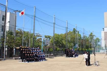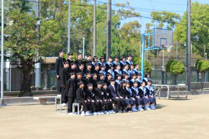 4月9日(金)1限目、爽やかな晴天のもと、グラウンドで「学級写真」を撮影しました。3年生から1年生の順で2クラスずつ順番に撮影していきました。