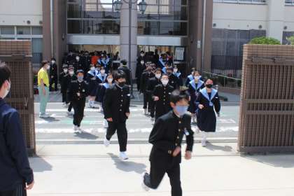 11時40分「緊急地震速報が発令」の放送が入り、「揺れが収まりました」の放送でグラウンドへ避難しました。全員が避難完了するまで6分あまりの時間を要しました。