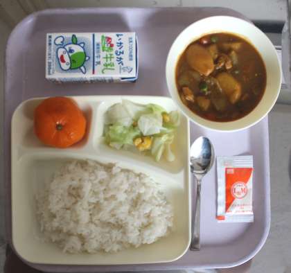 《感想》カレーは、辛くなくまろやかで、大人気でした。冷みかんは、思わず顔がくしゃむくらい冷たかったです!