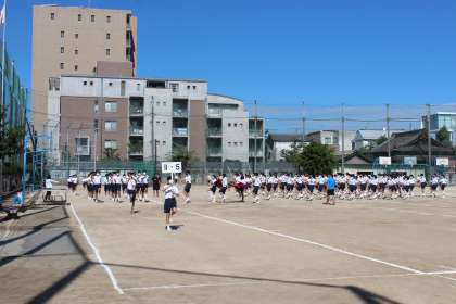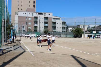 入場行進の練習、ラジオ体操等の練習を行いました。気温が上がり汗ばむ中、一人一人が学級集団としての足踏みを揃えようとする行進は、「一致団結」という言葉がぴったりでした。