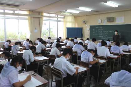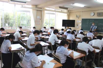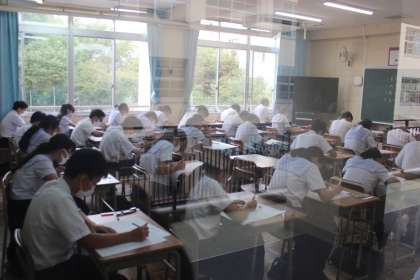 10月6日(水)、中間テスト1日目。英語、社会、数学、さらに3年生は音楽のテストを行いました。