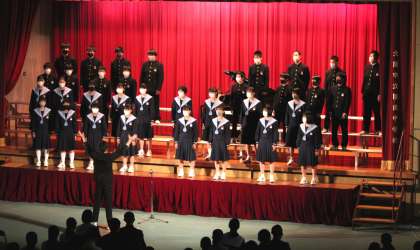 1番目は、4組です。課題曲「群青」は共通、自由曲「虹」を歌いました。