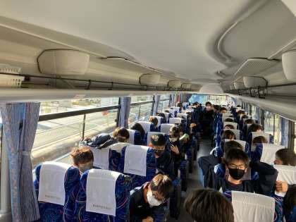 穏やかな晴天の下、1年生は、校外学習で「舞洲スポーツアイランド」に出発しました。