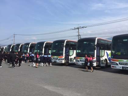 生徒達はクラスによってはカラオケ大会などバスの中は盛り上がっています。