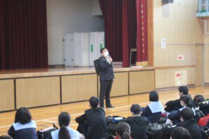 高島校長先生から体調管理に努め、怪我無く、楽しい思い出となる修学旅行にしようと、お話がありました。