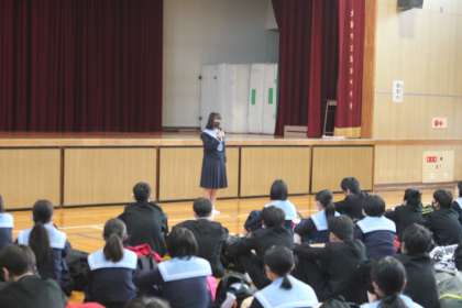 生徒代表Kさんから、ルールを守り、楽しい修学旅行になるようにしようと、あいさつがありました。