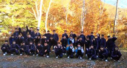 紅葉した木々を背景に記念撮影!