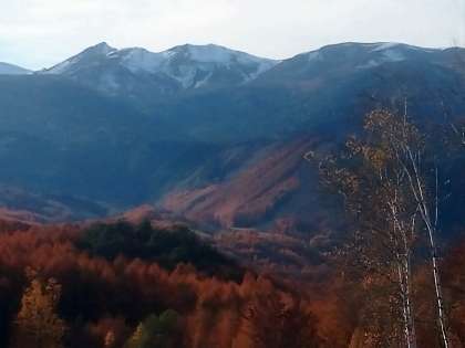 朝日に輝く午前の姿は秋のはじまりのように眩しかったのが、午後になると山頂付近は冬を感じさせる色あいになりました。しかし、生徒たちの活動するここは現地の方々もびっくりするほどおだやかで何よりも感謝です。