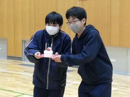 修学旅行期間中に誕生日を迎えた二人の誕生日をみんなで祝いました。そして、何よりよかったのは、急な停電の時間があったのにもかかわらず、学年代表二人が真っ暗な中、みんなにがんばろうと語りかけ、時間をつなぎました。とても気配りできる素晴らしい学年です。成長しましたね!お誕生日おめでとう!