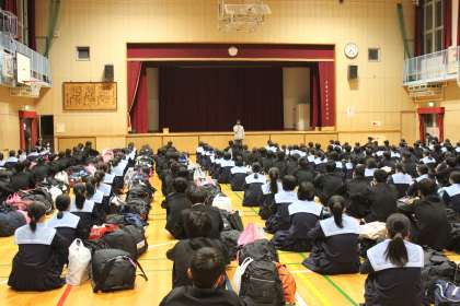 最後に渡部先生から…修学旅行から帰ってきて、君たちの課題がわかりました。明日から3日間ゆっくり休んで疲れをとってください。校長先生からお話にもありましたが、君たちに高いレベルへの成長を期待しています。火曜日には、成長した君たちに会えると期待していますと、お話がありました。