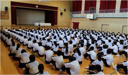 今朝の3年学年集会では、体育大会では「行進やラジオ体操の集団演技では模範を示す」「日頃の練習の成果を最大限発揮する」など、先生から檄が飛ばされました。