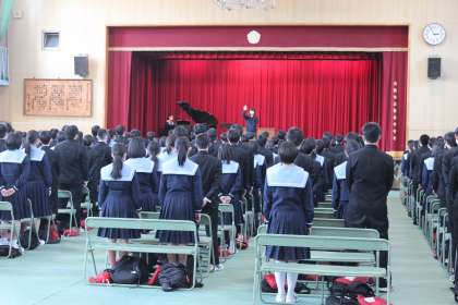 3年生は、11日(金)に卒業式を迎えます。卒業証書の授与の流れを確認、卒業の歌の練習を行いました。