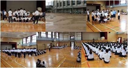 6月3日(水)の「体育大会学年練習」は、あいにくの雨天となったため、各学年とも体育館で行いました。