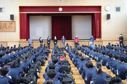中西校長先生から健康管理(感染対策)に努め、怪我無く、楽しい思い出となる修学旅行にしようと、お話がありました。