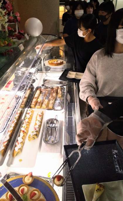 終盤はケーキに行列ができています!デザートは、別腹ですね!
