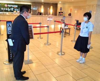 退所式、学年代表が「レオマの森」の方へお世話になったお礼をお伝えしました。