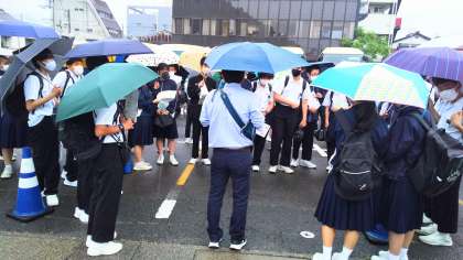 琴平散策前の班長会議を行いました。お天気は、残念ながら雨です。
