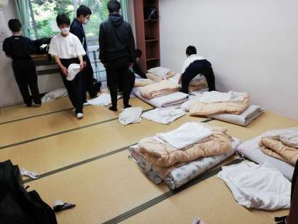 まだまだ眠たい人も多いですが、しっかり布団をたたみ今日の準備をしています。