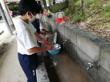 美味しく食べ終わったら、みんなで後片づけです。みんなで協力してがんばっていました。