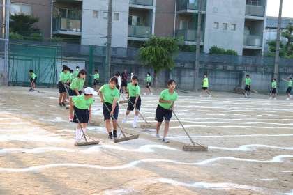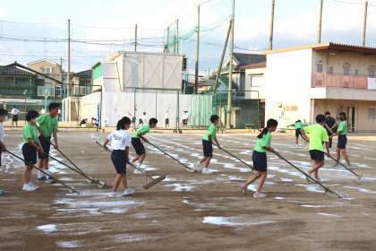 6月8日(木)部活動終了後、陸上部みなさんが「にがり」を散布してくれました。しっとりしたグラウンドになることでしょう!
