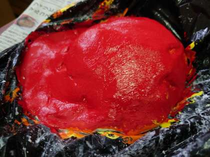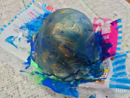「くすのき学級」の活動で、紙粘土の青い山と赤いキャップを作りました。