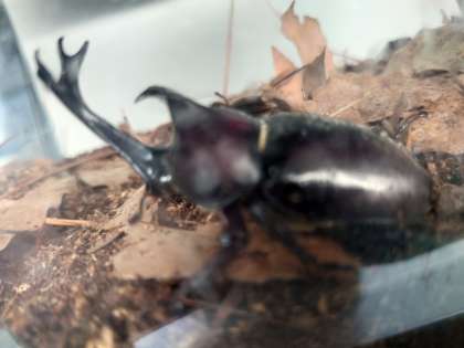 ある日の夕方、とうとうカブトムシの成虫が飼育ケース内の土の上に出て来ました。
