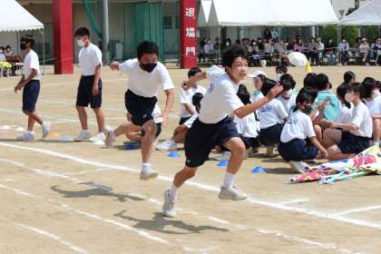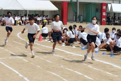 「全員リレー2」 バトンをクラス全員でつないでゴールをめざしました!