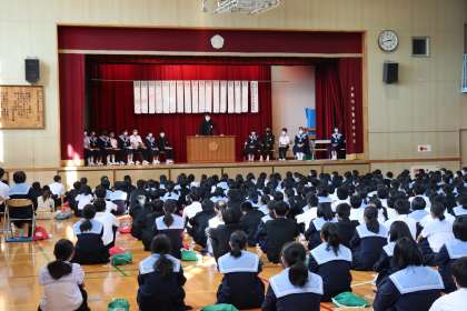 10月14日(金)午後、生徒会役員選挙立会演説会が行われました。立候補者は大勢の前で一人ずつ演説を行いました。みなさん堂々としていてとても立派でした。