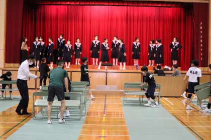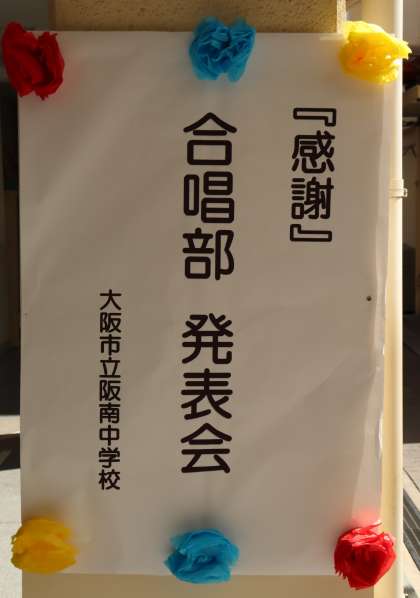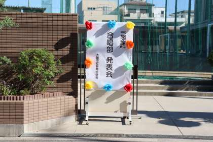10月15日(土)11時から日頃よりお世話になっています晴明丘・阪南連合振興町会長様をはじめ、近隣のみなさま、給食配膳員、元気アップコーディネーター、新校舎建設業者、PTA役員のみなさまをお迎えし、合唱部の発表会を開催いたしました。