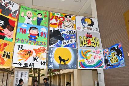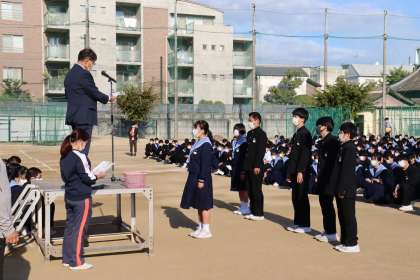 文化発表会で学級旗コンテストが行われ、最優秀賞、優秀賞に選ばれたクラスの代表生徒に、校長先生から代表生徒に表彰状が伝達され、大きな拍手で祝福されました。おめでとうございます。