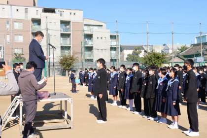 10月31日(月)朝 全校集会で、先日の生徒会役員選挙で信任及び選ばれた役員や後期学級委員に、校長先生から認証状が授与され全校生徒から大きな拍手が贈られました。