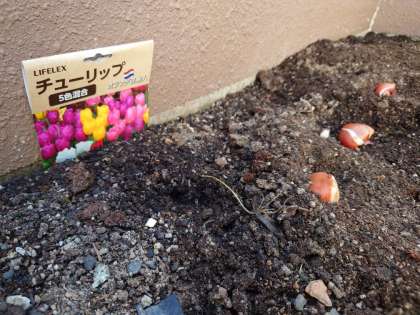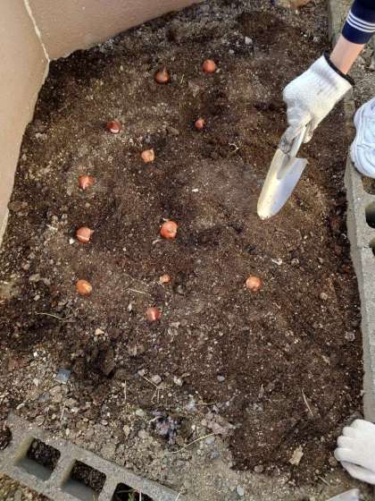 「くすのき畑」の花壇にチューリップの球根を植えました。