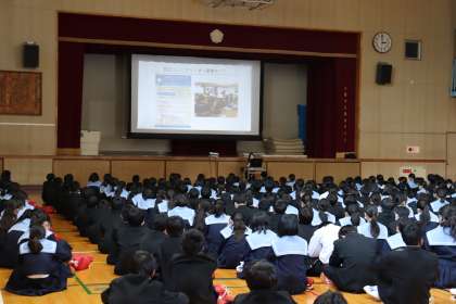近い将来に巨大地震が発生したとき、自分の命をいかにして守ればいいのか。地震発生時の行動、家具が倒れて下敷きにならない取り組み、その対応策など、詳しく説明していただきました。区役所のみなさん、ありがとうございました。ジュニア防災リーダーに登録してくださいと呼びかけがありました!
