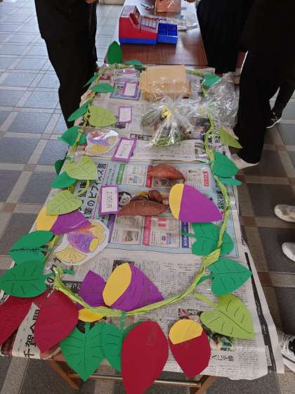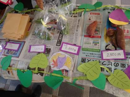 秋に「くすのき畑」で収穫したサツマイモ・ナス・シシトウ・ヒマワリの種を真心価格で販売しました。