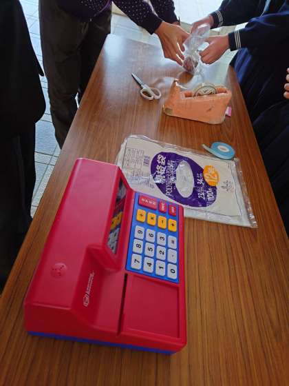 今日の3限目、学校のロビーで「くすのきバザー」を開催しました。