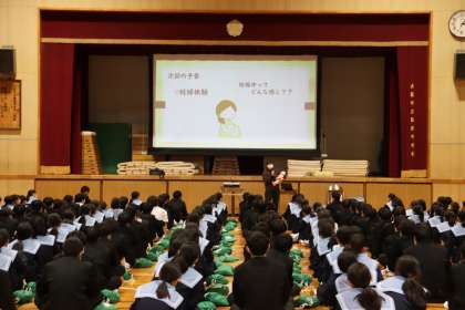 12月5日(月)6限、2年生は妊婦体験・赤ちゃんの着替え体験の事前学習を行いました。