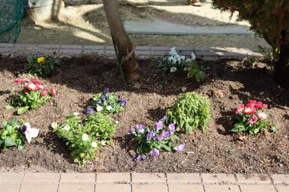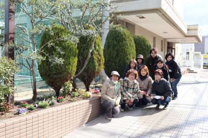 卒業式を3週間後に迎えます。PTA施設・保健委員会の皆さんが体育館手前の花壇に色どりを添える草花を植えていただきました。