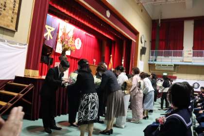そして、PTA実行委員の皆様より「感謝の花束」の贈呈があり、閉式の辞で卒業式が閉会となりました。