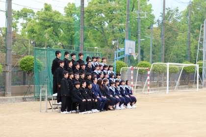 4月12日(水)1限目、雨が心配されましたがグラウンドで「学級写真」を撮影しました。1年生から3年生の順で2クラスずつ順番に撮影していきました。