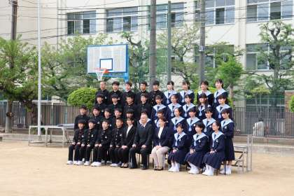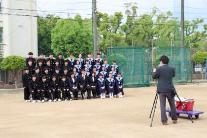 1年生は、入学式から1週間も経っていません。緊張した表情で写真撮影にのぞんでいました。