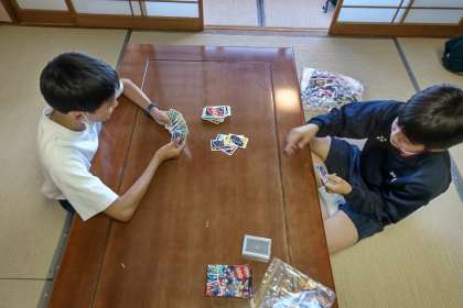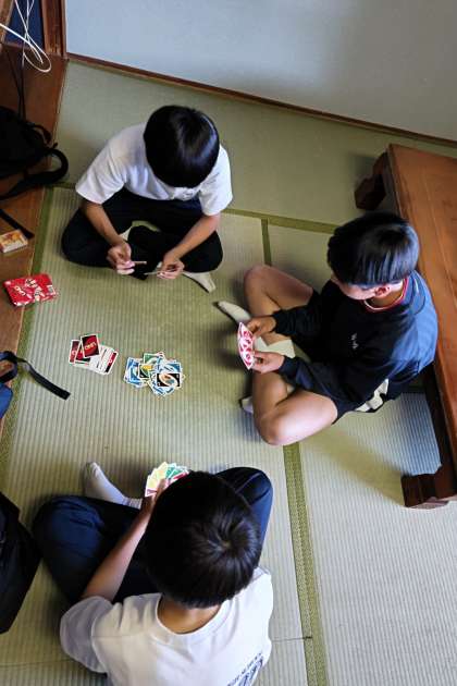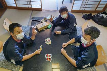 食事とお風呂の前のくつろぎタイムです。室長は、集合してミーティングです!