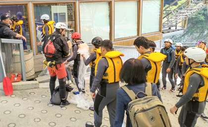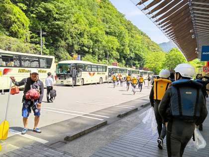 ラフティングは、バスに乗ってスタート地点に移動します。