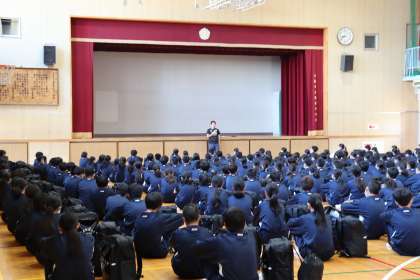5月17日(水)8時15分までに体育館に集合、整列、点呼を行い、続いて、出発式を行いました。