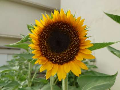 1学期の終わり頃、「くすのき畑」の花壇に種をまいた「秋咲きヒマワリ」の花が、週末の間に咲き始めました。